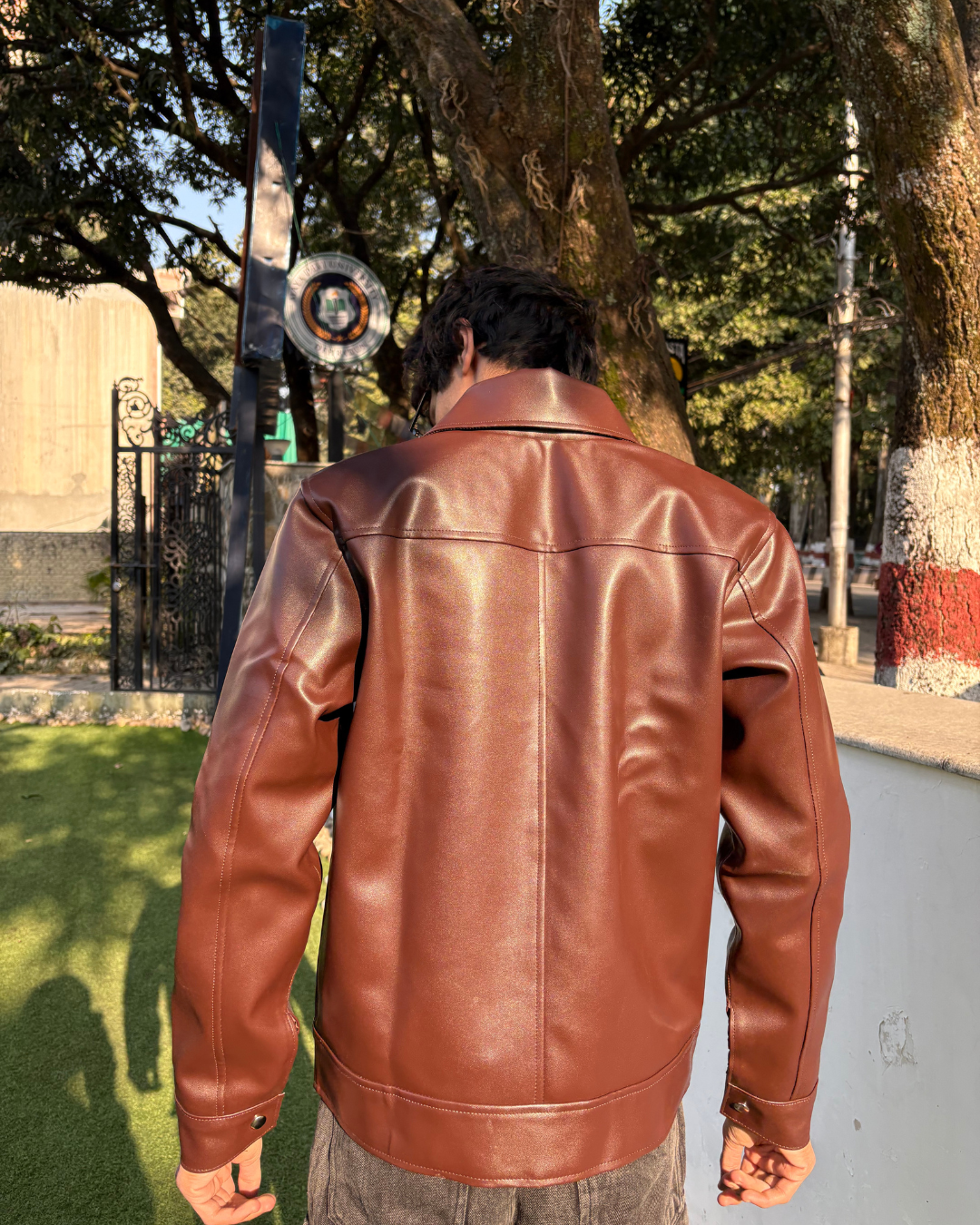 Mocha Aero Cropped Leather Jacket